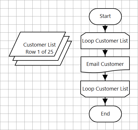 The ‘Loop Customer List’ loop is configured to loop through the ‘Customer List’ Collection.