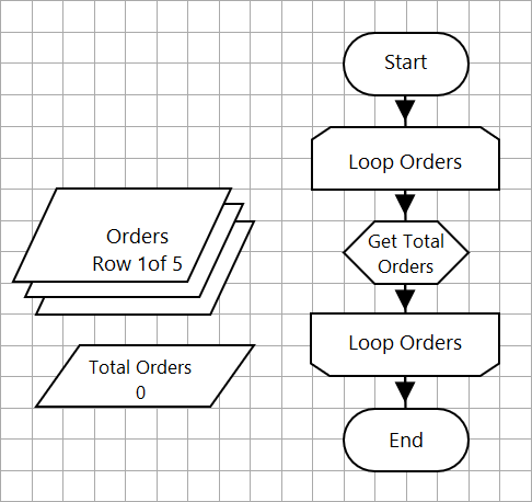 Examine the following Process flow, which calculates the total number of orders: