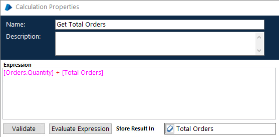 The ‘Get Total Orders’ Calculation stage contains the following expression:
