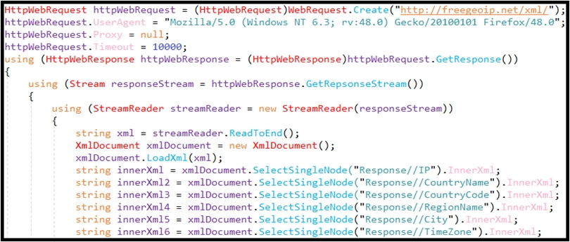 4. The file is redirecting users to a website that is determining users' geographic location.
