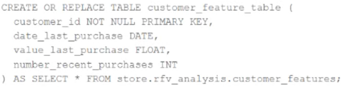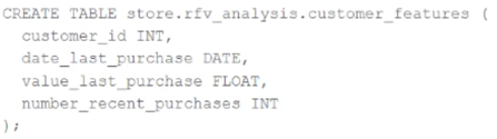 1. CREATE FEATURE TABLE store.rfv_analysis.customer_features USING PRIMARY KEY (customer_id);