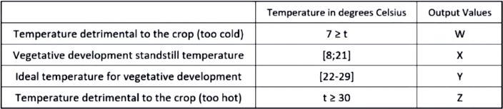 When the system establishes that the average temperature is within a specific range, it emits a value that will be used to monitor and control the crop.