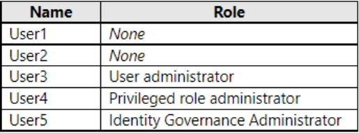 The tenant contains the users shown in the following table.