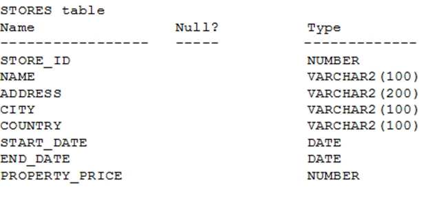 View the exhibit and examine the structure of the STORES table.