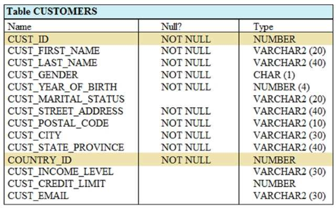 View the Exhibit and examine the structure of CUSTOMERS table.