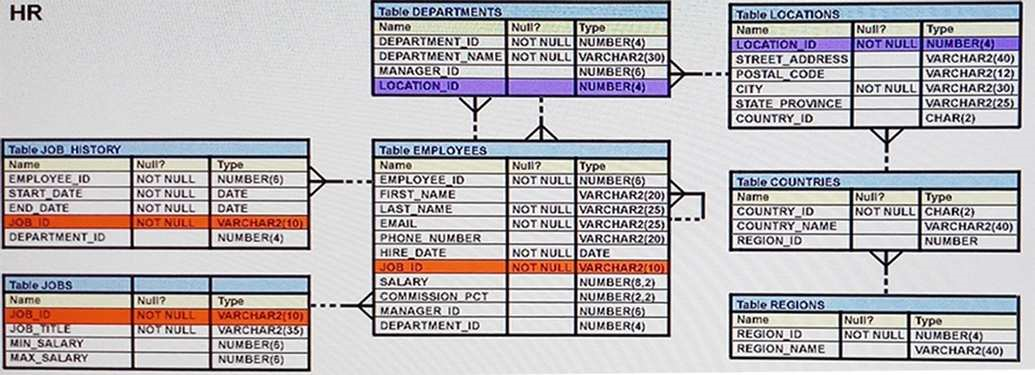 View the exhibit and examine the structures of the EMPLOYEES and DEPARTMENTS tables.