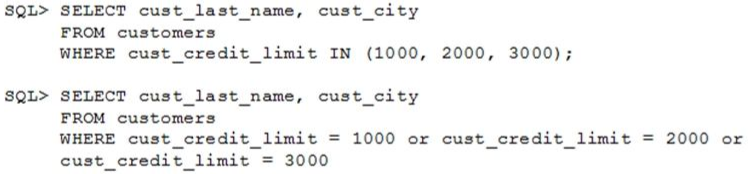 1. Performance would improve in query 2 only if there are null values in the CUST_CREDIT_LIMIT column.