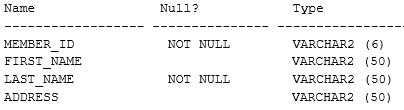 SQL > SELECT member_id, ' ' , first_name, ' ' , last_name "ID FIRSTNAME LASTNAME " FROM members;
