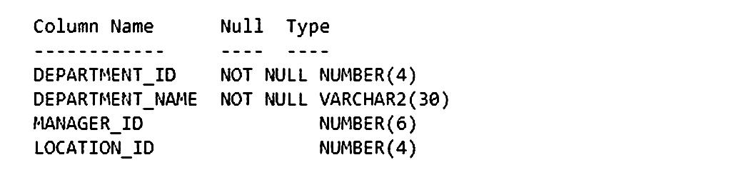Examine the structure of the ora1.depts table: