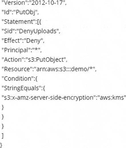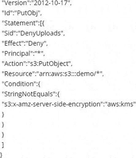 Which of the following bucket policies will ensure that objects being uploaded to a bucket called 'demo' are encrypted?