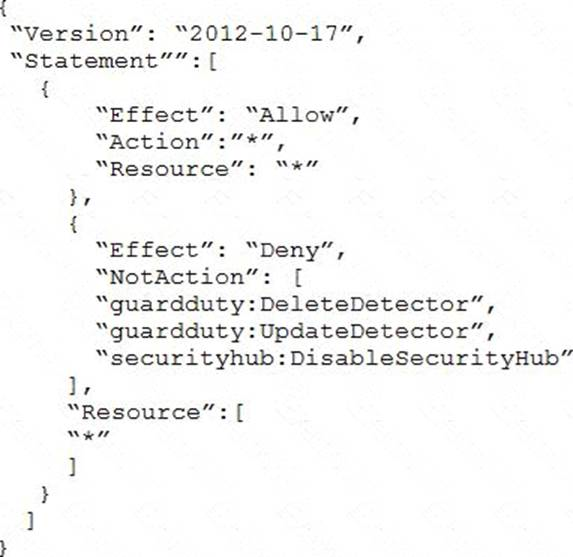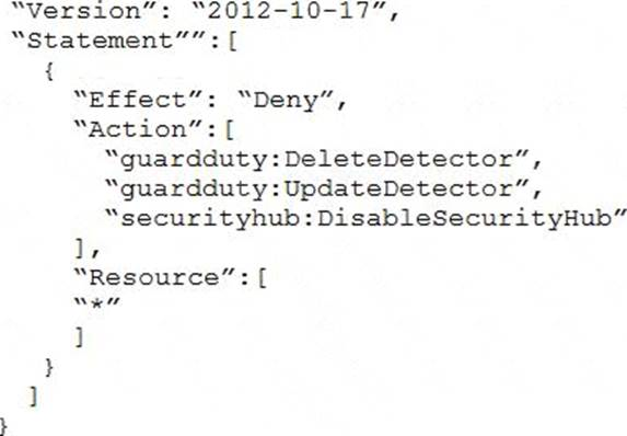 A company deploys a set of standard IAM roles in AWS accounts. The IAM roles are based on job functions within the company. To balance operational efficiency and security, a security engineer implemented AWS Organizations SCPs to restrict access to critical security services in all company accounts. All of the company's accounts and OUs within AWS Organizations have a default FullAWSAccess SCP that is attached. The security engineer needs to ensure that no one can disable Amazon GuardDuty and AWS Security Hub. The security engineer also must not override other permissions that are granted by IAM policies that are defined in the accounts.