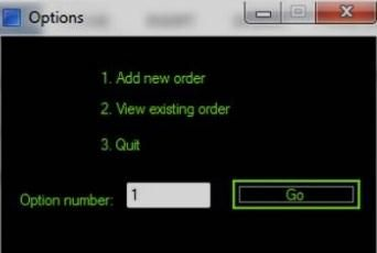 When entering an option within the Training Order system the relevant option number is entered into the Option number field as below The Option number input field has been spied in Blue Prism: