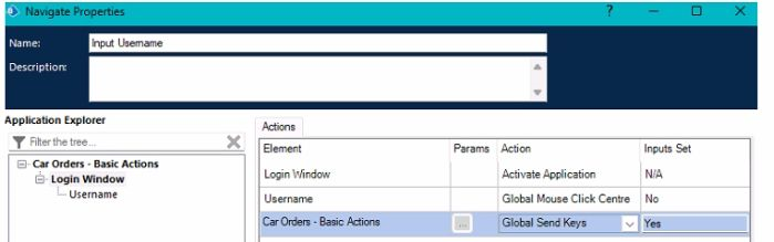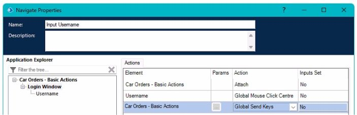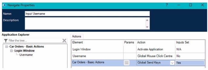 • Global Send Keys' action to populate the Username field.