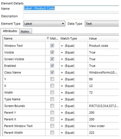 3. The Y attribute for the Screen Text "" Product Code element must be set to a Match Type of "˜Equal'