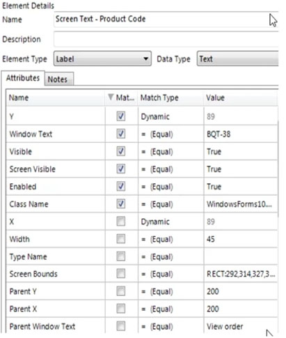 5. The Window Text attribute for the Screen Text "" Product Code element must be un-checked