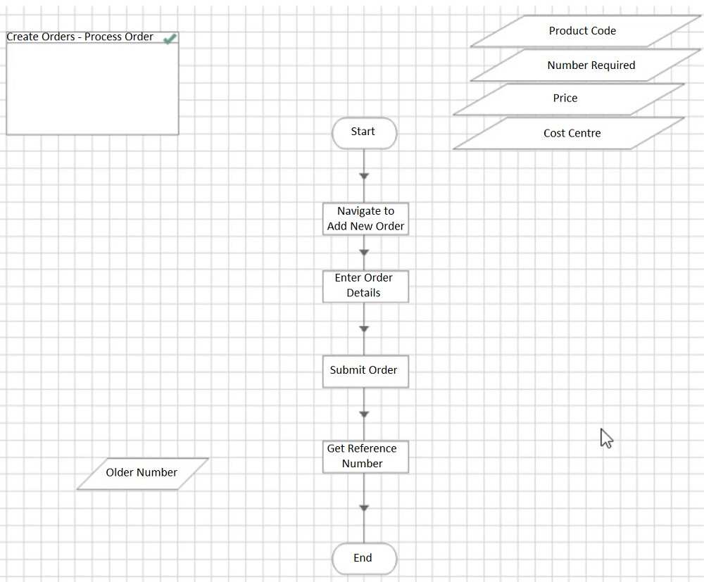 • Navigate to New Order – The application is navigated to a new order screen. There is a wait stage to confirm the navigation is successful – if this wait stage