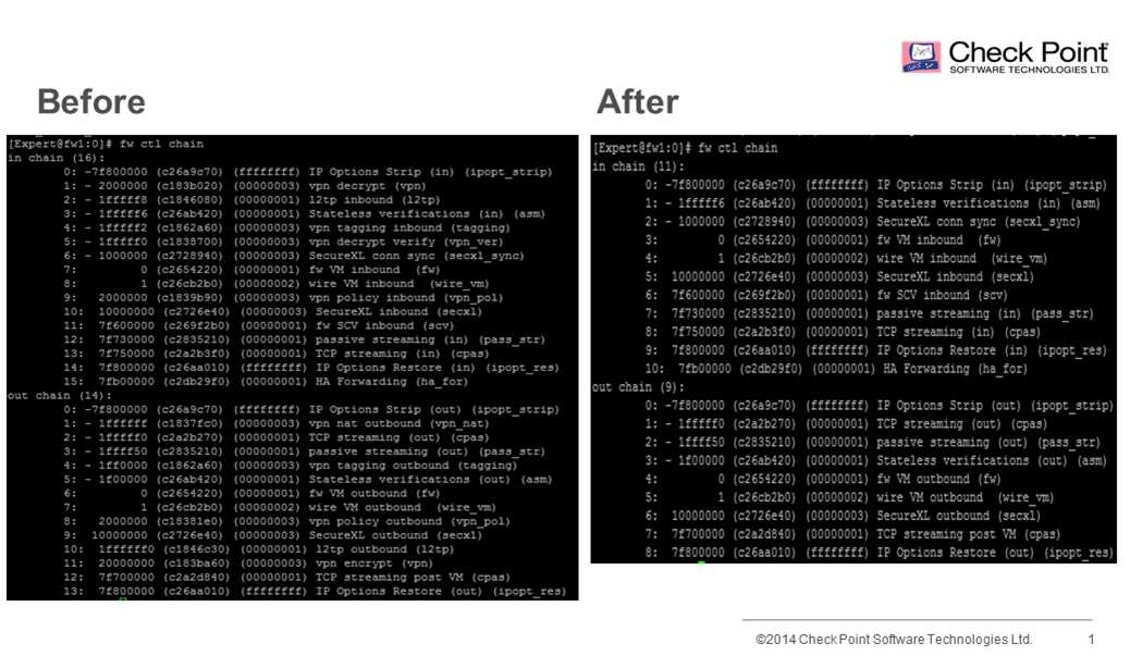 1. [Expert@HostName]# fw ctl chain