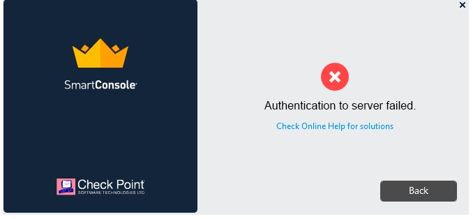 Vanessa is attempting to log into the Gaia Web Portal. She is able to login successfully. Then she tries the same username and password for SmartConsole but gets the message in the screenshot image below. She has checked that the IP address of the Server is correct and the username and password she used to login into Gaia is also correct.