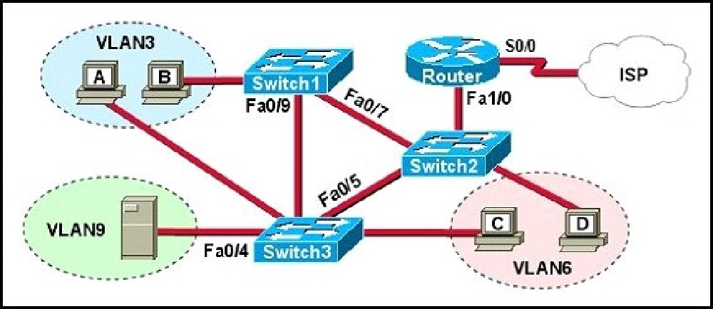 A problem with network connectivity has been observed. It is suspected that the cable connected to switch port Fa0/9 on Switch1 is disconnected. What would be an effect of this cable being disconnected?