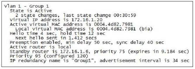 When the command standby 44 timers 3 1 is issued on a Hot Standby Routing Protocol (HSRP) router, the role of active router will be passed repeatedly from one router to another. This behavior occurs when the timers are set incorrectly. The syntax for the standby timers command is standby [group-number] timers [hellotime holdtime].The hellotime variable is the number of seconds between hello messages and is set to a value of 3 by default.The holdtime variable is the number of seconds that the HSRP standby router will wait before assuming that the active router is down; if the standby router believes the active router to be down, it will assume the role of active router.The holdtime is set to a value of 10 by default. The holdtime should be set to a value at least three times the value of the hellotime. Otherwise, the active router might not be able to respond before the standby router assumes that the active router is down and becomes the new active router.Because the command standby 44 timers 3 1 sets the hellotime to a value of 3 and the holdtime to a value of 1, the role of active router will be passed from one standby router to the next. To set the holdtime to a value of 3 and the hellotime to a value of 1, the command standby 44 timers 1 3 should be issued. To reset the timer values to their default values, the command no standby group-number timers should be issued.The status of the standby router will be displayed as unknown expired if a Physical layer problem exists. The unknown expired status can also be displayed if only one HSRP router is configured for the subnet.To configure an HSRP router to reassume the role of active router in the event that the router fails and is subsequently restarted, the command standby groupnumber preempt should be issued. When the HSRP active router fails or is shut down, the standby router assumes the role of active router. By default, when the original HSRP active router is restarted, it does not take the role of active router away from the original standby router, even if the original active router has a higher priority value. The command standby group-number preempt changes this default behavior.The holdtime will not be set to a value of 3, and the hellotime will not be set to a value of 1. On the contrary, the hellotime will be set to a value of 3 and the holdtime will be set to a value of 1. Objective:Infrastructure Services Sub-Objective:Configure and verify first-hop redundancy protocolsReferences:Cisco IOS IP Application Services Command Reference > show vrrp through synguard (virtual server) > standby timersCisco > Cisco IOS IP Application Services Configuration Guide, Release 12.4 > Part 1: First Hop Redundancy Protocols > Configuring HSRP