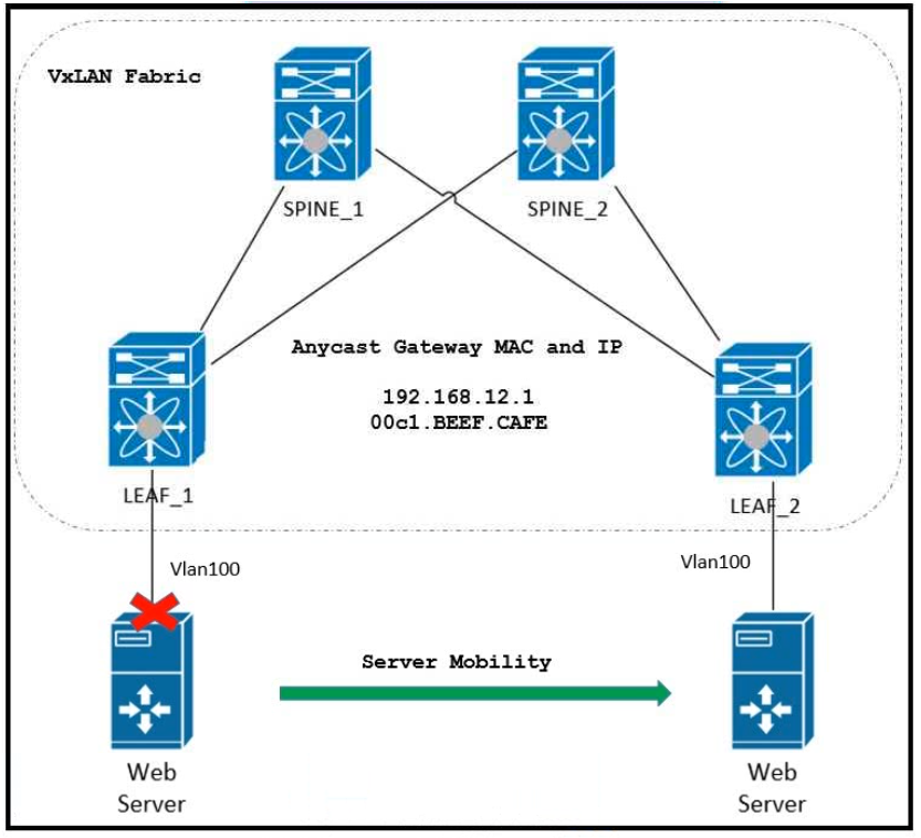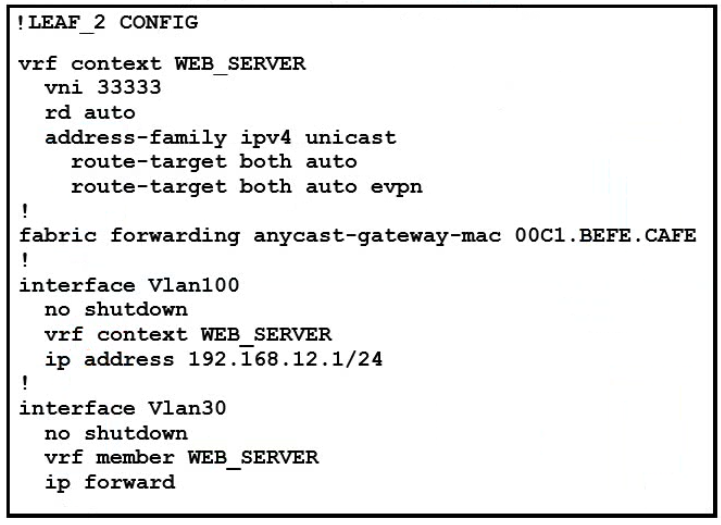 1. Add fabric forwarding mode anycast-gateway on interface Vlan100.