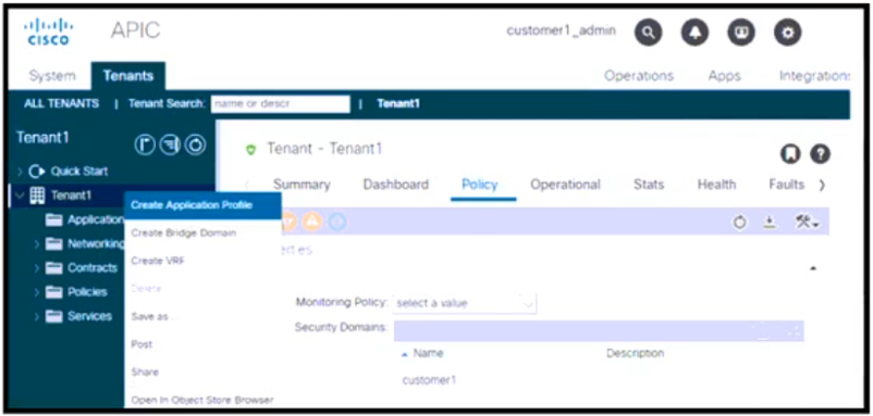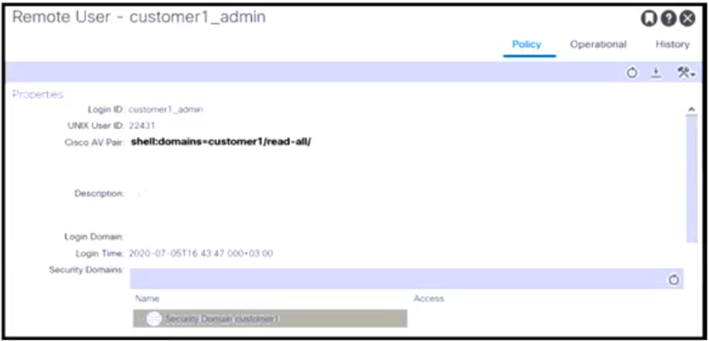 Refer to the exhibit. The Cisco ACI fabric is configured with RADIUS realm as the default authentication method. The customer1_admin user is configured with the read-all role but still can create new objects in Tenant1. Which Cisco AV pair must be used to resolve the issue?