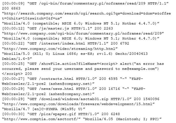 An internal penetration tester was assessing a recruiting page for potential issues before it was pushed to the production website. The penetration tester discovers an issue that must be corrected before the page goes live. The web host administrator collects the log files below and gives them to the development team so improvements can be made to the security design of the website.