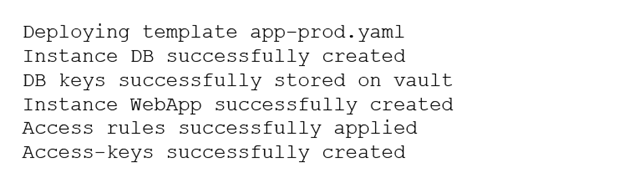 A security analyst is investigating a recurring alert. The alert is reporting an insecure firewall configuration state after every cloud application deployment. The process of identifying the issue, requesting a fix, and waiting for the developers to manually patch the environment is being repeated multiple times. In an effort to identify the root issue, the following logs were collected: