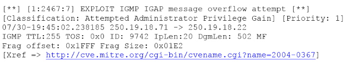 3. The attacker sent a malformed IGAP packet, triggering the alert.