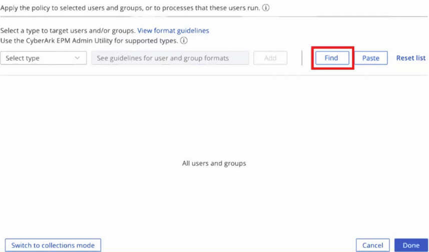 3. In the EPM admin utility, it opens a window to select users and group from AD or from the local endpoint