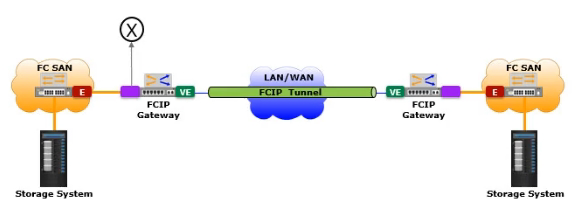 Based on the exhibit, what does the 'X' represent in the FCIP tunnel configuration?