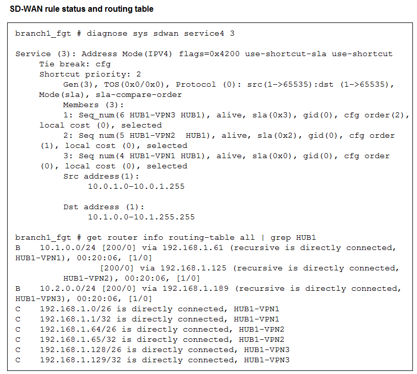 1. The configuration instructs FortiGate to choose an ADVPN shortcut based on SD-WAN information.