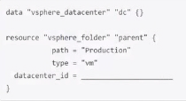 This follows the syntax for accessing data source attributes, which isdata.TYPE.NAME.ATTRIBUTE. In this case, the data source type isvsphere_datacenter, the data source name isdc, and the attribute we want to access isid.