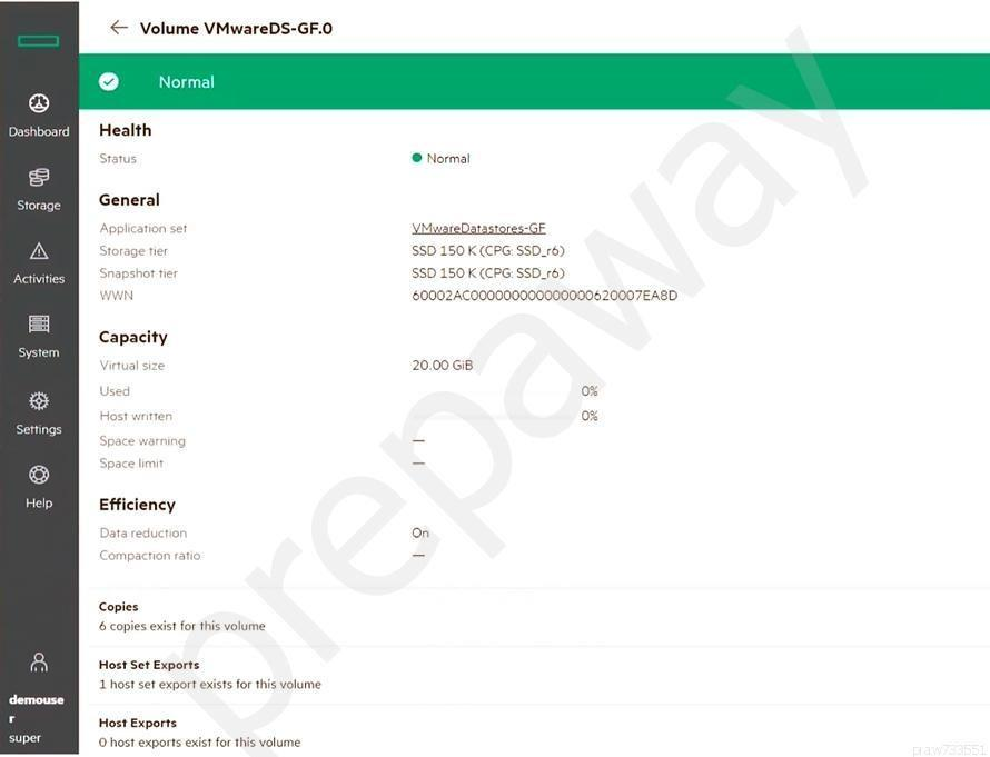 You are configuring a new HPE array and verifying properties of a set of volumes.