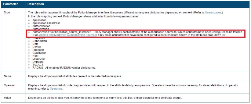 References: ClearPass Policy Manager 6.5 User Guide (October 2015), page 114
