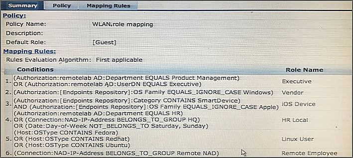 C: Role Mappings Page - Rules Editor Page Parameters   D: Enforcement Policy Attributes tab Parameters   References:http://www.arubanetworks.com/techdocs/ClearPass/Aruba_CPPMOnlineHelp/Content/CPPM_UserGuide/identity/RoleMappingPolicies.html http://www.arubanetworks.com/techdocs/ClearPass/Aruba_CPPMOnlineHelp/Content/CPPM_UserGuide/PolicySim/PS_Enforcement_Policy.htm