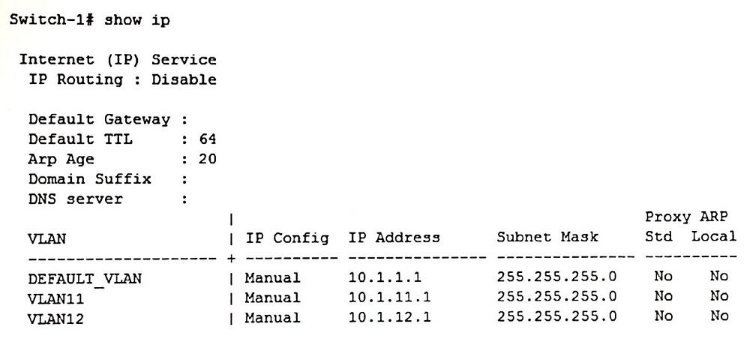 4. Enable OSPF routing on VLAN 11 and on VLAN 12 in the same area.