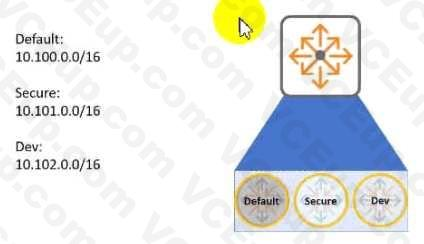 Aruba CX 6300 switch has routes in three different VRFs as per the example above. The user needs to leak routes between VRF Secure and VRF Dev. and also between VRF default and VRF Dev The customer Is not able to establish routing between directly connected networks 10.100.50.0/24 and 10.102.26.0/24