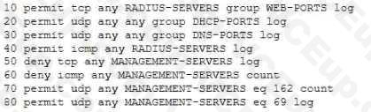 5. The denied tcp traffic to the MANAGEMENT-SERVERS group is not logged to event logs