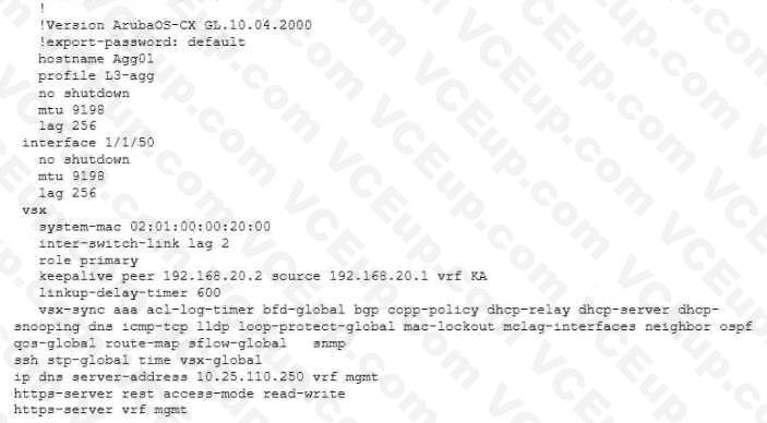 An engineer has attempted to configure two pairs of switches in the referenced configuration it is required to implement VSX keep-alive at the aggregation layer.