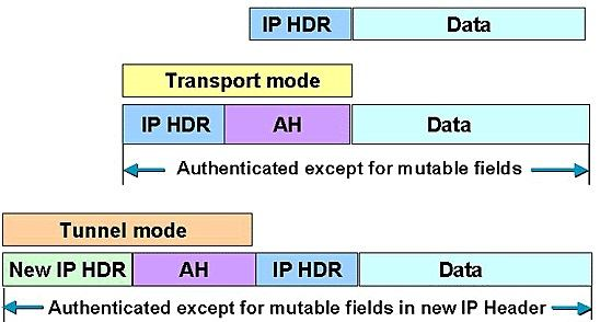AH Tunnel Versus Transport Mode Figure 2 above, shows the differences that the IPSec mode makes to AH. In transport mode, AH services protect the external IP header along with the data payload. AH services protect all the fields in the header that don't change in transport. The header goes after the IP header and before the ESP header, if present, and other higher-layer protocols.