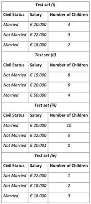 Using the “Tax System” specification scenario as described above, using boundary value analysis, which would be the most interesting test set to explicitly test one single boundary value as defined in the “Tax System” specification?