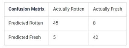 Upon testing a model used to detect rotten tomatoes, the following data was observed by the test engineer, based on certain number of tomato images.