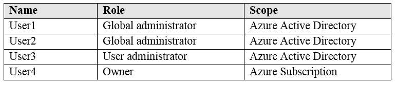 You have an Azure subscription that contains the following users in an Azure Active Directory tenant named contoso.onmicrosoft.com: