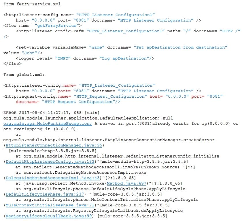 4. There are two HTTP Listener configurations bound to the same port number 8081