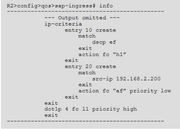 3. The default SAP-ingress policy classifies all traffic into FC ''be'' with low priority.