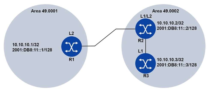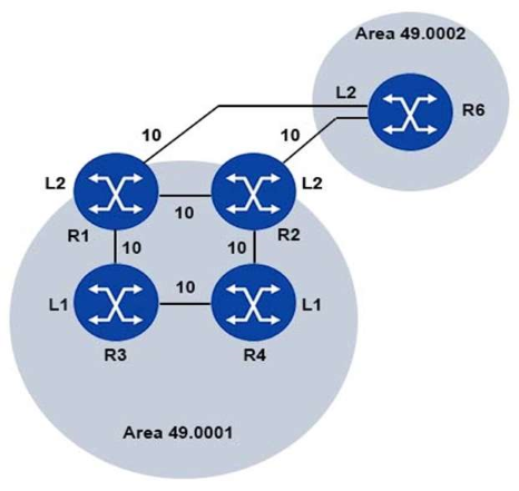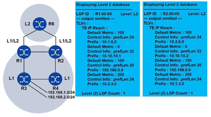 Examine the physical topology of the IS-IS network, the metrics of the links and the levels of the routers. All routers have a system address included in IS-IS.