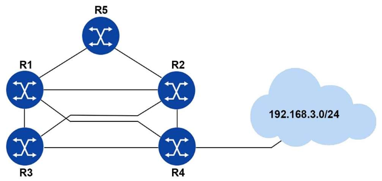 3. Router R1 summarizes the prefixes from router R3 as 192.168.0.0/20 and router R2 does not summarize the prefixes.