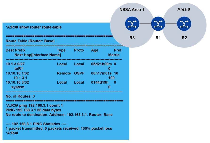 1. Add the "originate-default-route" option in the NSSA area configuration on router R3.