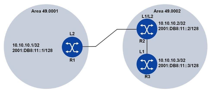 1. Router R2 has two IS-IS adjacencies and two LSPs.